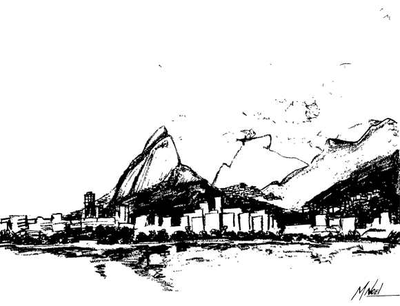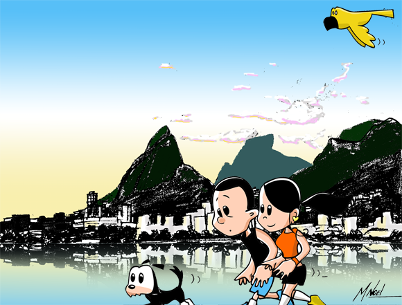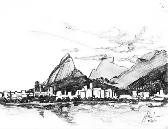 Hoje resolvi sair com a Gisele e desenhar ao ar livre! Escolhemos a Lagoa Rodrigo de Freitas (Rio de Janeiro), perto de onde moramos.
