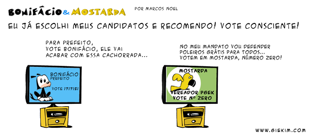 Eleições 2012: Eu já escolhi meus candidatos e recomendo! Marcos Noeloutubro 7, 2012UncategorizedLeave a Comment Hoje é dia de eleição! Vote consciente, Bonifácio e Mostarda na cabeça! Tweet Clique para compartilhar no WhatsApp(abre em nova janela) WhatsApp